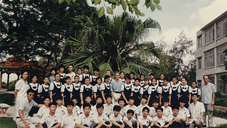 在深圳市委、市政府和市教委的重视和关怀下,在深圳中学的大力支 持下,龚国祥校长带领4名教师、51名学生,在从深圳中学借用的4 间教室中的一间教室里举办了第一次升旗仪式和开学典礼:在墙上挂 一面国旗,全体师生面向国旗高唱国歌,龚国祥校长进行国旗下第一 次讲话。深外正式开办。从此,深外开启了不断走向辉煌的征程。